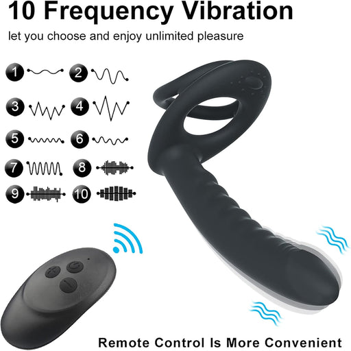 Skatīt visu informācijuUnikāls pāru prostatas stimulatoru komplekts ar vibrējošiem gredzeniem un anālo dildo