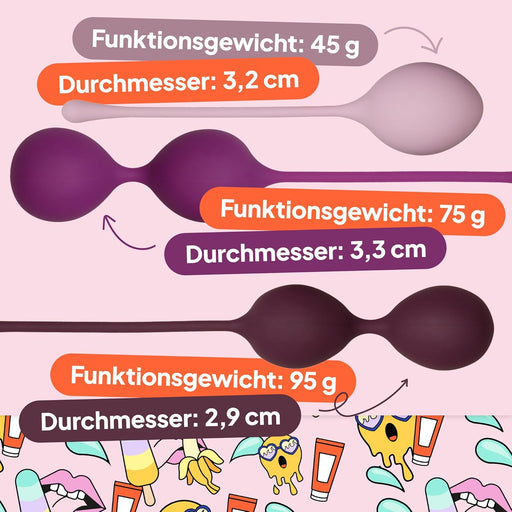 Skatīt visu informācijuLiebeskugeln 3er Set – drošas silikona bumbiņas iegurņa muskuļu trenēšanai