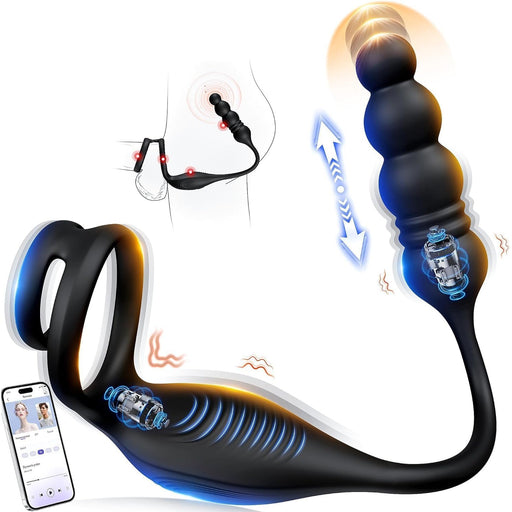 Вибратор 3-в-1 для мужчин с регулируемым пенис-кольцом и управлением через приложение