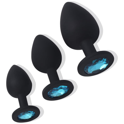 Посмотреть подробностиНабор из 3 металлических анальных пробок с сильной присоской – голубой кристалл