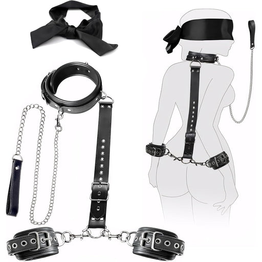 Посмотреть подробности3-в-1 BDSM набор с кожаными наручниками, ошейником и повязкой с сильной присоской