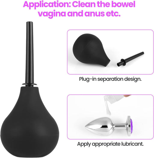 Элегантный набор из 3 металлических анальных пробок с кристаллами и анальным душем