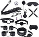 - В комплекте наручники с сильной присоской, манжеты на лодыжки, маска, кляп и другие аксессуары