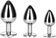 Набор из 3 алюминиевых анальных пробок с кристаллами и широкой базой с сильной присоской