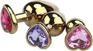 Glighter Gold Аналные Плаги с Кристаллом в Виде Сердца с сильной присоской – Набор из 3 Размеров